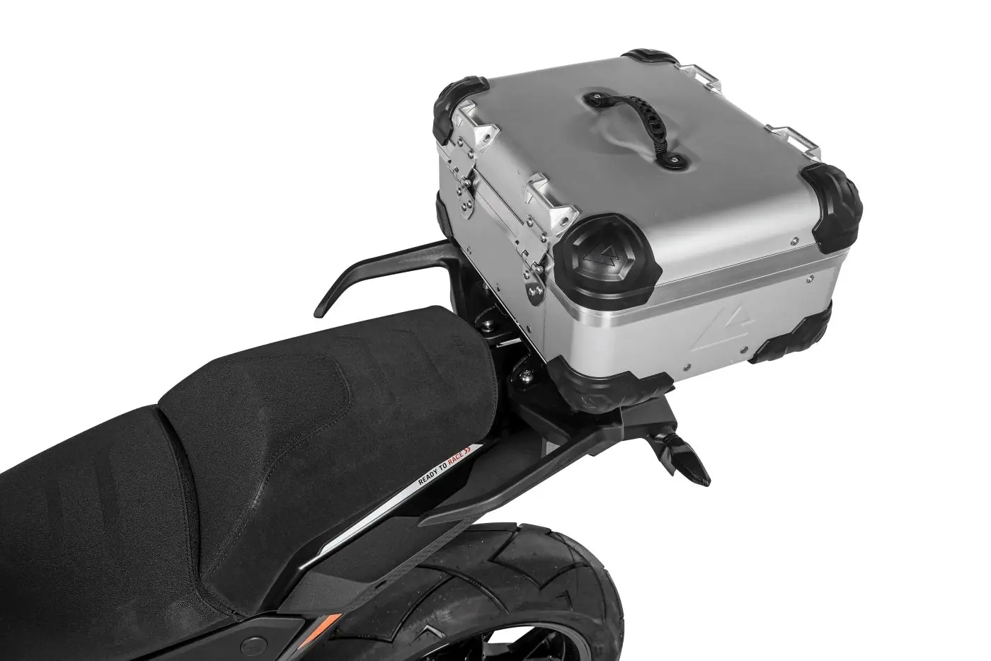 The Topcase rack can be used on its own or in conjunction with our or the KTM pannier system.
